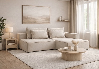 Диван Базель с правой оттоманкой Бежевый (Velutto 18), Велюр
