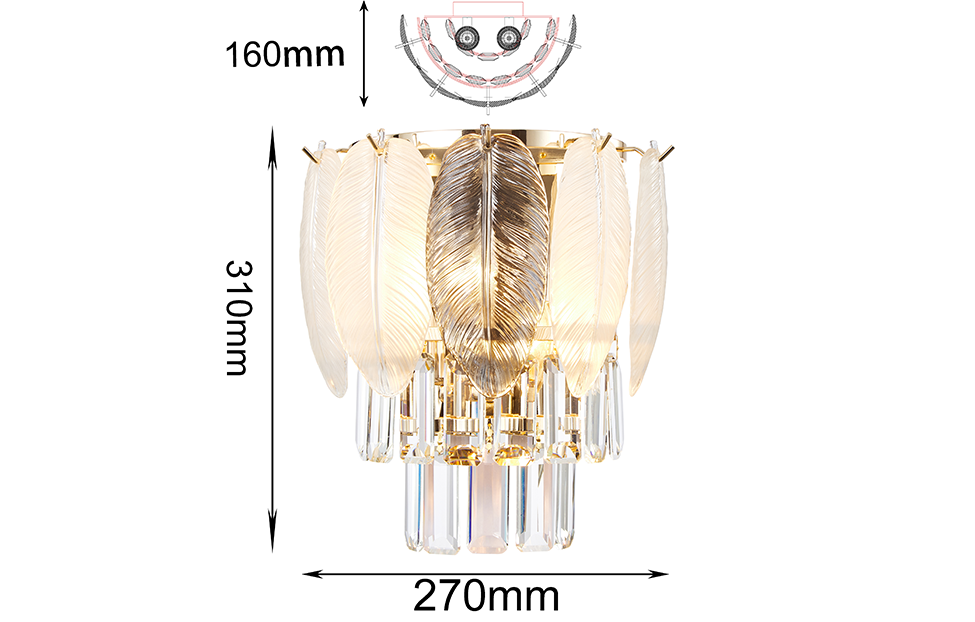 - Количество ламп: 2 (в комплект не входят).